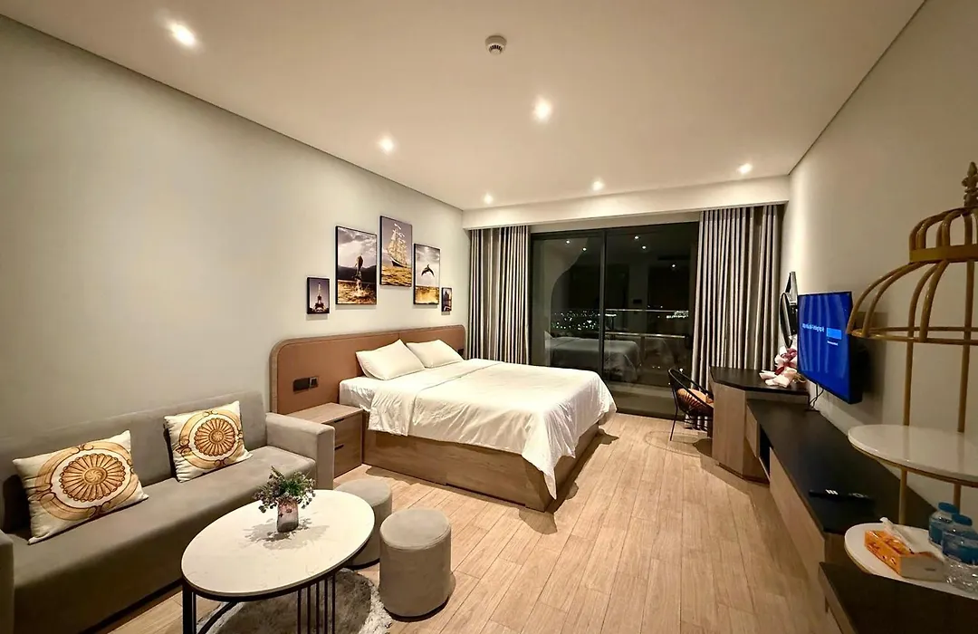 Offering a rooftop swimming pool, the beachfront Chuoi Can Ho Citadines Huong Bien Ha Long apartment is located 450 metres from Halong Marine Plaza Outlet Mall. Standing 10 minutes by car from the Castaway Island, this apartment features a sitting area on a terrace.